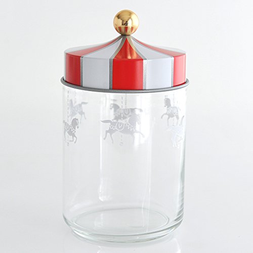 Alessi Circus MW30/100 - Barattolo Ermetico di Design, in Vetro Serigrafato con Coperchio in Banda Stagnata, 100 cl