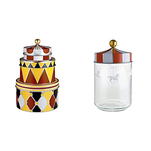 Alessi Circus MW31S3 Set Scatole Portaoggetti Impilabili di Design in Banda Stagnata & MW30/100 Circus Barattolo Ermetico in Banda Stagnata e Vetro, 100 cl