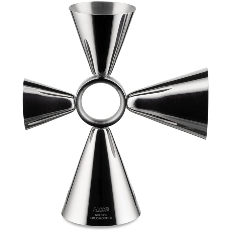 Il misuratore ad anello GIA28 presenta le quattro misure comunemente usate nelle preparazioni dei cocktail. Nel suo disegno l'autore Giulio Iacchetti, dà vita a una nuova gestualità: il misurino della collezione The tending box si fonde organicamente con i movimenti fluidi dei mixologist. La tipologia si arricchisce così di una nuova interpretazione che sintetizza in un oggetto semplice e compatto tutta la versatilità e funzionalità di questo irrinunciabile strumento.