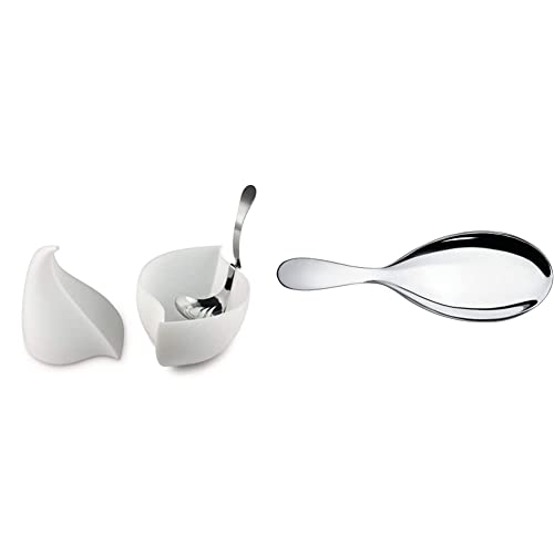 Alessi Nunziatella Esi23 Set, Contenitore E Mestolo Forato Di Design Per Servire La Mozzarella, In Resina Termoplastica, Bianco & Eat.It Wa10/27 Cucchiaio Da Cucina Per Risotto Di Design