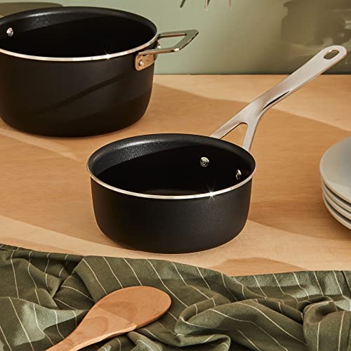 Alessi Pots&Pans Casseruola a Manico Lungo al, Alluminio con Rivestimento Antiaderente, Inossidabile 18/10, Fondo in Acciaio Magnetico Adatto Anche alla Cottura a Induzione, Nero, 16 cm