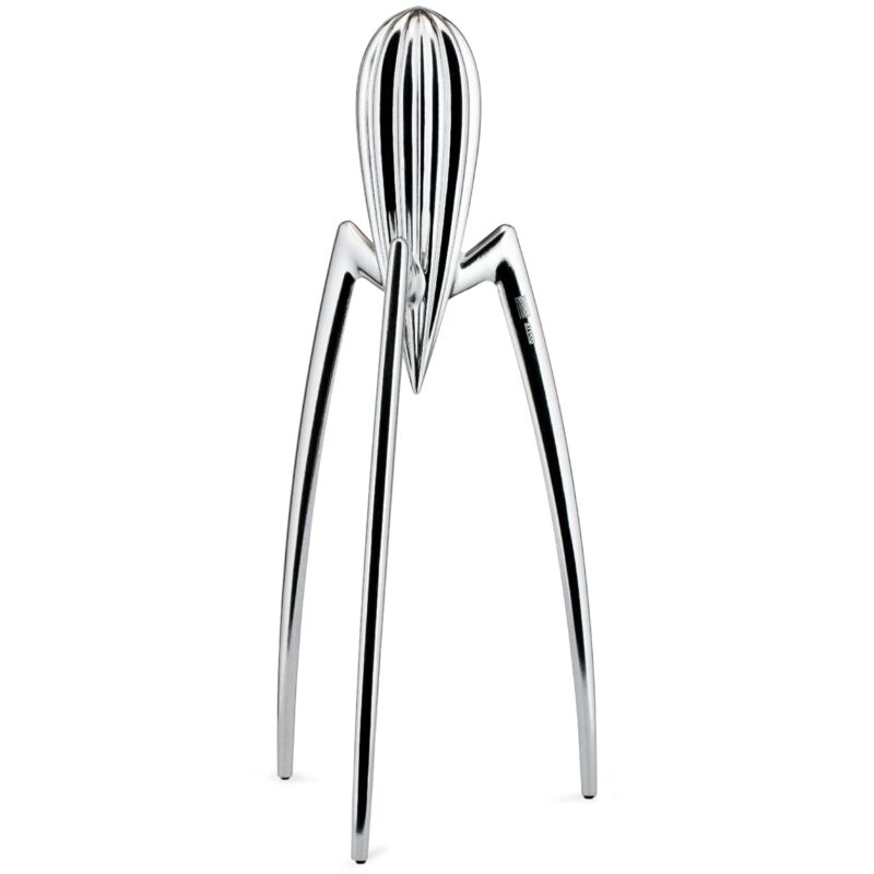 Descrizione Lo spremiagrumi manuale Juicy Salif PSJS W é diventato l'accessorio di design iconico e il simbolo della produzione di Philippe Starck e di Alessi. Un piccolo elettrodomestico per cucina fu delineato nei suoi tratti essenziali da Starck durante una vacanza al mare, in Italia, su una tovaglietta da pizzeria. Lo spremi agrumi manuale, utilizzabile come spremi arance, limoni e lime è realizzato in fusione di aulliminio che lo rende leggero ma allo stesso tempo resistente e in grado di entrare a contatto con tutti i cibi. Juicy Salif non può essere lavato in lavastoviglie, quindi è sempre opportuno lavarlo sotto l'acqua corrente per evitare si rovini. Disponibile in diverse colorazioni: argento, bianco.