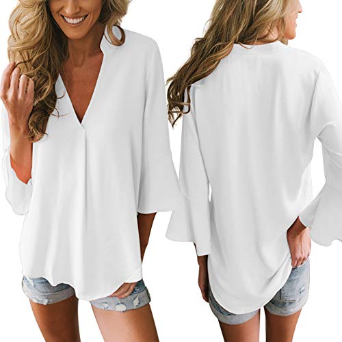 Aleumdr Camicetta Donna Manica 3/4 in Chiffon Blusa Donna Elegante V Neck Camicetta Blusa Donna Tinta Unita - Nero
