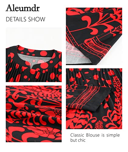 Aleumdr Donna T Shirt Camicetta con Bottoni Blusa Manica 3/4 Floreale Maglietta Maniche Lunghe Donna Elegante Tunica Donna- L(EU44-46)