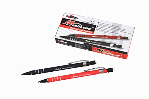 Alevar Matita Portamine a Scatto Automatica con Gomma da Cancellare, Mina 0.5 mm, Fusto Gommato Colori Assortiti Nero/Rosso e Clip in Metallo, Confezione da 12 Pezzi