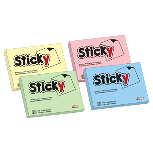 Alevar Sticky Blocchetto 100 Foglietti Adesivi Riposizionabili Formato 75x102 mm, Colore Rosa, Confezione da 12 Pezzi