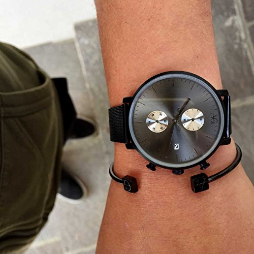 ALEXANDER GRAY: orologio da polso uomo CHRONO DETROIT - nero opaco, con cinturino in rete liscio e leggero - cassa sottile, leggero - cronografo con desifn minimalista per uomini con stile
