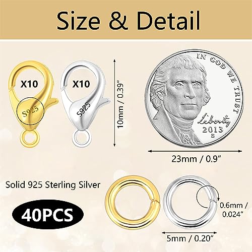 Delicato set di chiusure a moschettone in oro/argento: Include 20 chiusure a moschettone e 20 anelli salto aperti, 10 argento e 10 oro, adatti per il collegamento con molti tipi di gioielli, leggeri e pratici.