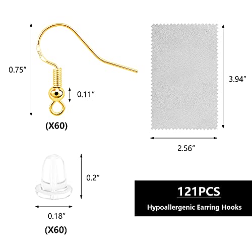 Set di ganci per orecchini ipoallergenici: 60 pezzi ganci orecchini e 60 pezzi chiusura, sufficienti per il vostro materiale di ricambio e di sostituzione che può essere utilizzato per lungo tempo. Con panno per lucidare l'argento per mantenerlo pulito e brillante.