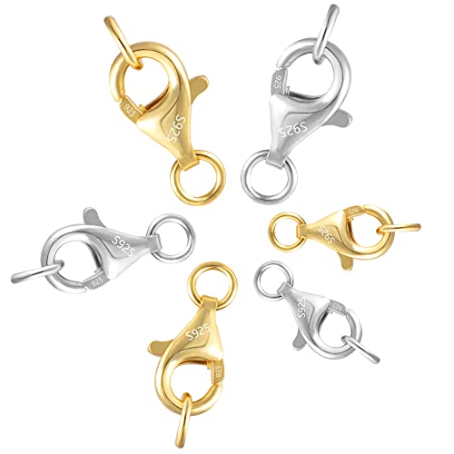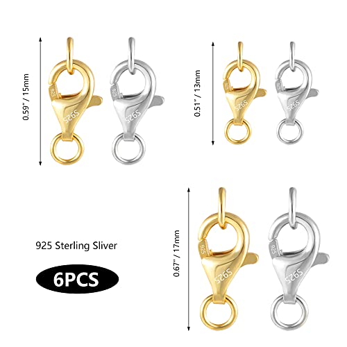Fermagli per aragosta: 6 set di fermagli per aragosta in argento sterling 925 con 2 anelli di salto aperti, progettati per la creazione di gioielli, che possono abbinarsi alla maggior parte delle collane e altri stili di accessori per soddisfare le diverse esigenze.