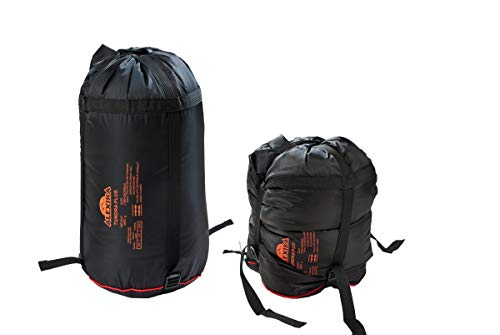 Le persone alte fino a 187 cm hanno molto spazio per allargare braccia e gambe durante il sonno: il sacco a pelo è lungo 230 cm (195 cm nella zona principale + 35 cm nel cappuccio e nel poggiatesta) e largo 90 cm