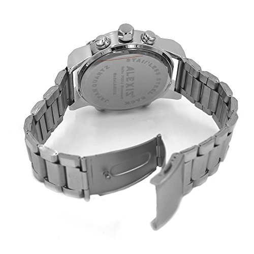 Alexis orologio rotondo Anadigit Japan Seiko movimento PC21 argento opaco in acciaio INOX Band Dark Blue Dial impermeabile sveglia della luce 12/24 ore modalità Dual Time display