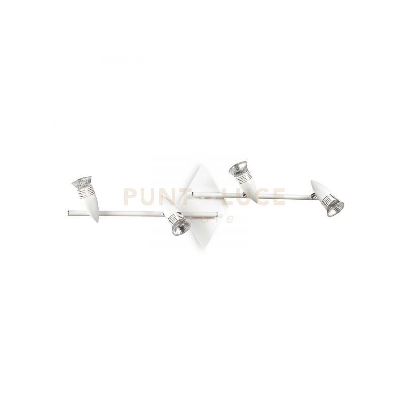 Lampada da soffitto con montatura in metallo e corpo luce posizionabile con rotazione dello stelo e snodo per l'inclinazione.