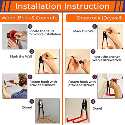 Multifunzione: i ganci per scaletta per montaggio a parete sono ideali per appendere sedie pieghevoli, scale, tubi da giardino, biciclette, attrezzi da giardino, kayak, legno da costruzione, utensili elettrici, attrezzature sportive e altri oggetti ingombranti. Ideale per organizzare il vostro garage