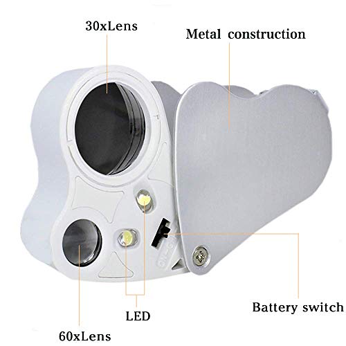 AlfaView 30X 60X lente di Ingrandimento Gioielli LED Illuminata Gioiellieri Lente di Ingrandimento Mini Lente di Ingrandimento Gioielli per Gioielli Antiquariato Monete Rocce Francobolli Orologi