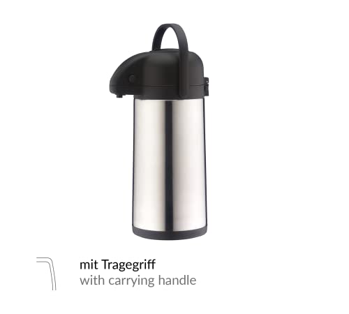 Alfi CARAFFA A POMPA TT 2,5 litri, dispenser bevande in acciaio opacizzato, pompa integrata, tiene caldo per 12 ore, freddo per 24 ore, per 24 tazze, con maniglia, ottima per catering, senza BPA