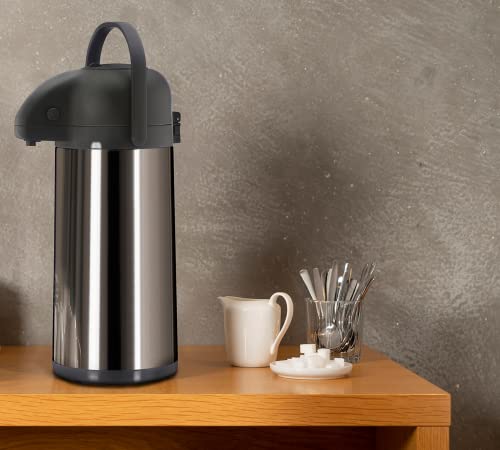 GRANDE CAPACITÀ: la caraffa a pompa ha una capacità di 2,5 litri. In totale è possibile ottenere fino a 20 tazze di caffè. ottima anche per mantenere calda l'acqua sul fasciatoio.
