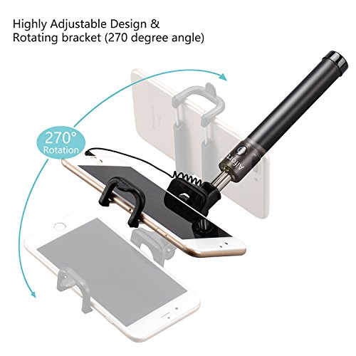 Alfort Bastone Selfie Selfie Stick Folding Braccio Selfie Extensible Ultra Compact con Controllo di Filo per iPhone 6s / 6 / 5s / Samsung S7 / Huawei P8 Lite e Altre Macchine Android (Nero)