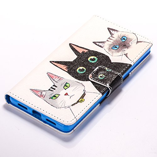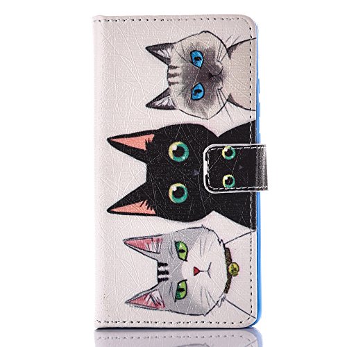 Alfort Cover Huawei P9 Lite, Custodia 3 Pezzi Portafoglio Libro Protective Case Flip Copertina PU Pelle per Huawei P9 Lite con Chiusura Magnetica e Funzione di Supporto (Tre Gatti)