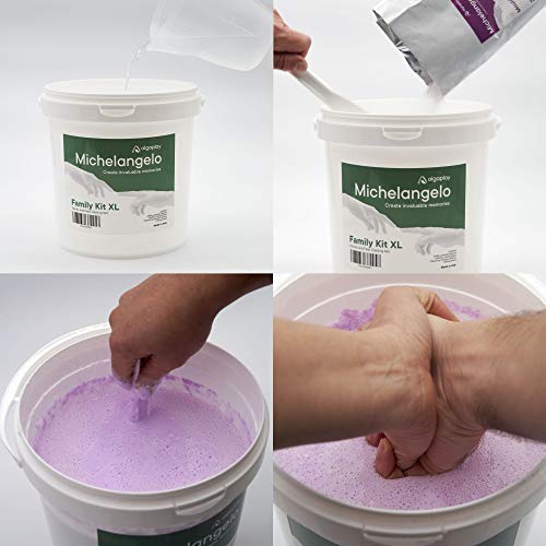 Algaplay Michelangelo Kit per Calco Mani Set completo con alginato, gesso e caraffa graduata per scultura 3D. Idea regalo per coppie, amici e famiglia. Prodotto in Italia. (FAMILY KIT 4 MANI)