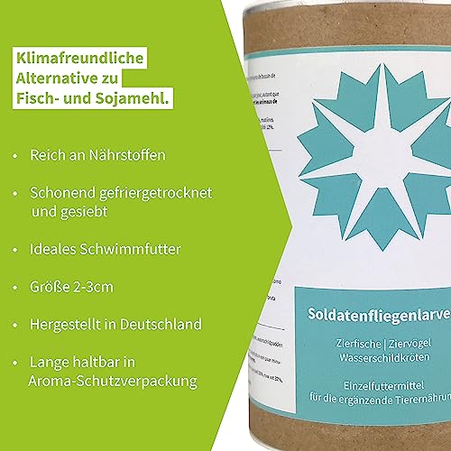 ☀️ LIBERATO ASCIUGATO E FILTRATO Grazie alla liofilizzazione delicata e precisa, cioè all'essiccazione a bassa temperatura, vengono conservati molti ingredienti preziosi come gli acidi grassi omega-3 e le vitamine. Inoltre, gli Hermetia sono intensamente filtrati dai residui di mangime e dal substrato, in modo da ottenere un prodotto finale di elevata purezza. Grazie alla loro bassa densità, le larve essiccate sono un alimento galleggiante ideale per molte specie di pesci e tartarughe.