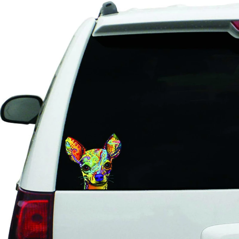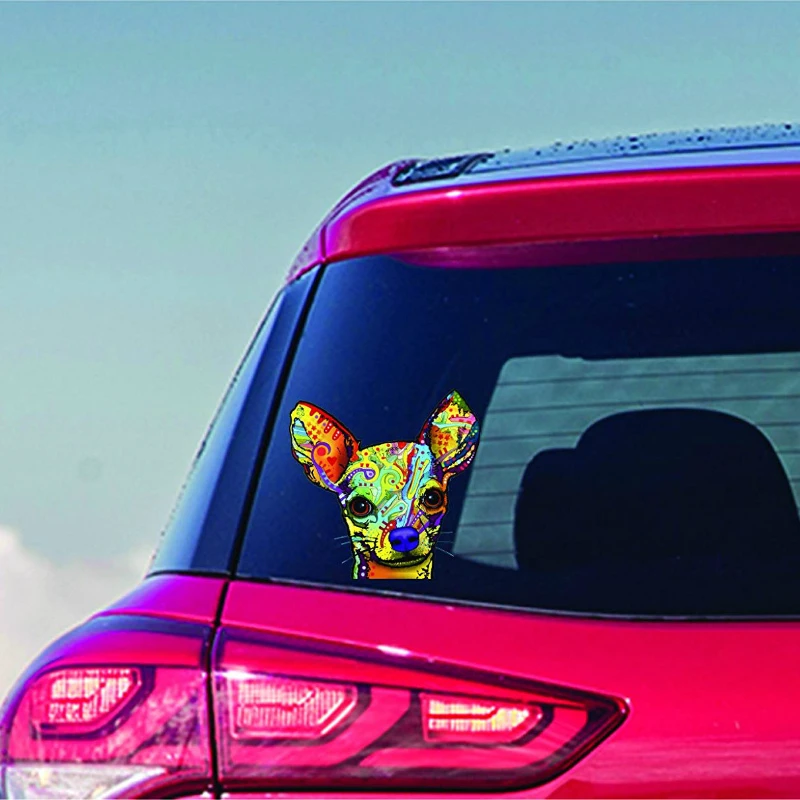 Aliauto Fashion Art Car Sticker Lovely Chihuahua Auto Motorcycles Laptop Fridge Decoration PVC Decal Cover Scratches,14cm*14cm