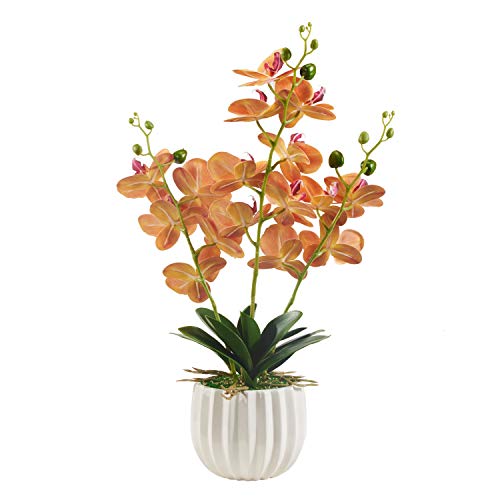 Alicemall Fiori Artificiali di Orchidea con Vaso, Decorazione Floreale per Matrimonio (Giallo Due)
