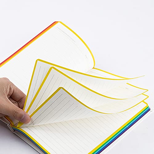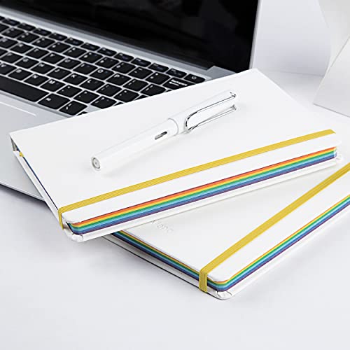Aliena A5 Quaderno, Taccuino classico, copertina rigida con pelle PU, 112 pagine con elastico, 7 bordi di colore diverso per una facile classificazione, 80 g/fogli, righe(nero/bianco in 2 pezzi)