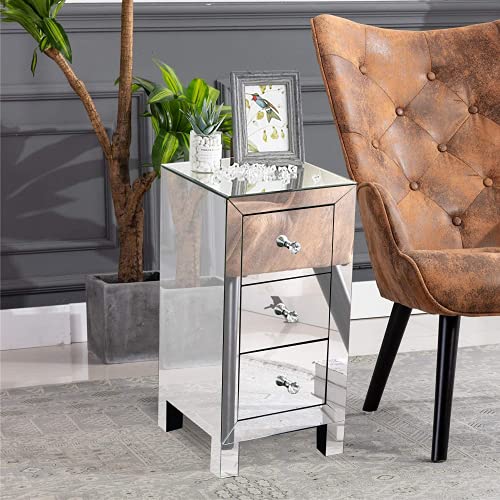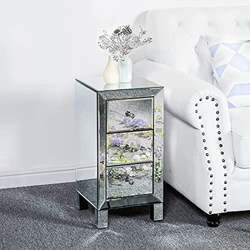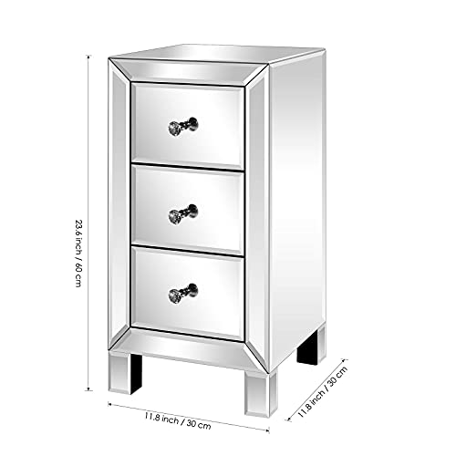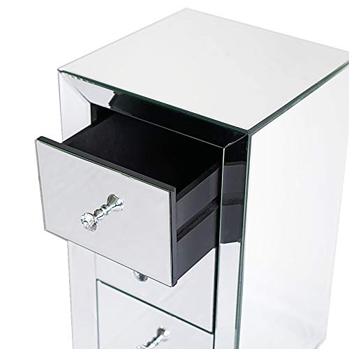 Alightup Comodino Set di 2 Comodini in vetro a specchio con 3 cassetti Mobile contenitore Comò Camera da letto Comodino per adulti Soggiorno Camera da letto Ufficio Bagno 30 x 30 x 60 cm