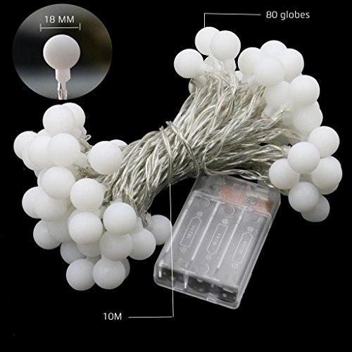 Alimentato a batteria LED Fairy Lights Christmas 10 m 80LEDS Globe luci per camera da letto, giardino, interni, esterni, party, patio, festival (bianco caldo)