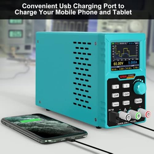 Alimentatore da Banco Programmabile, Alimentatori Laboratori Regolabile 0-60V, 0-5A, Pulsante M1-M4 Memorizza 4 Set di Dati, Protezione da Sovratensione e Sovracorrente, Porta di Ricarica USB