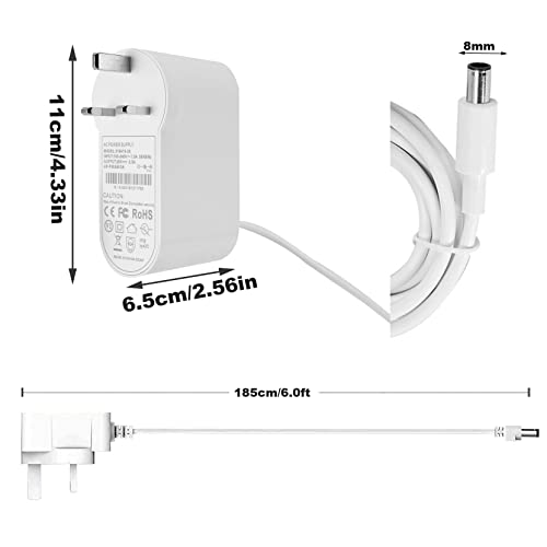【20V Caricabatterie Purificatore for Dyson Charger】 Ingresso: 100-240V, 50-60 Hz. Uscita: 20V, 2,5A 50W. Peso del prodotto 160 g, lunghezza del cavo 1,85 m. Adatto per purificatori d'aria, umidificatori, ventilatori multifunzione Dyson.