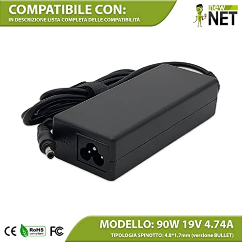 New net - Alimentatore Caricatore Caricabatteria da 19V 4.74A 90W Compatibile con Notebook HP Pavilion DV9000 DV9100 DV9200 DV9500 DV9600 DV9700 DX6000 TX1000 [ 4,8 * 1,7 mm ]