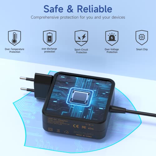 Questo caricabatterie per laptop da 65 W con certificazione CE, FCC, RoHS per la sicurezza. Prodotto con chip intelligente, materiali di isolamento di alta qualità contro sovraccarico, sovratensione e cortocircuito. Fornisce protezioni multiple per il tuo laptop.