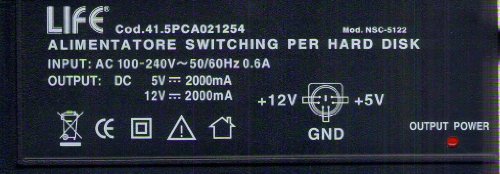 Alimentatore Doppia Tensione Hard Disk Esterno HDD 5-12 V./6 Pin Sottili