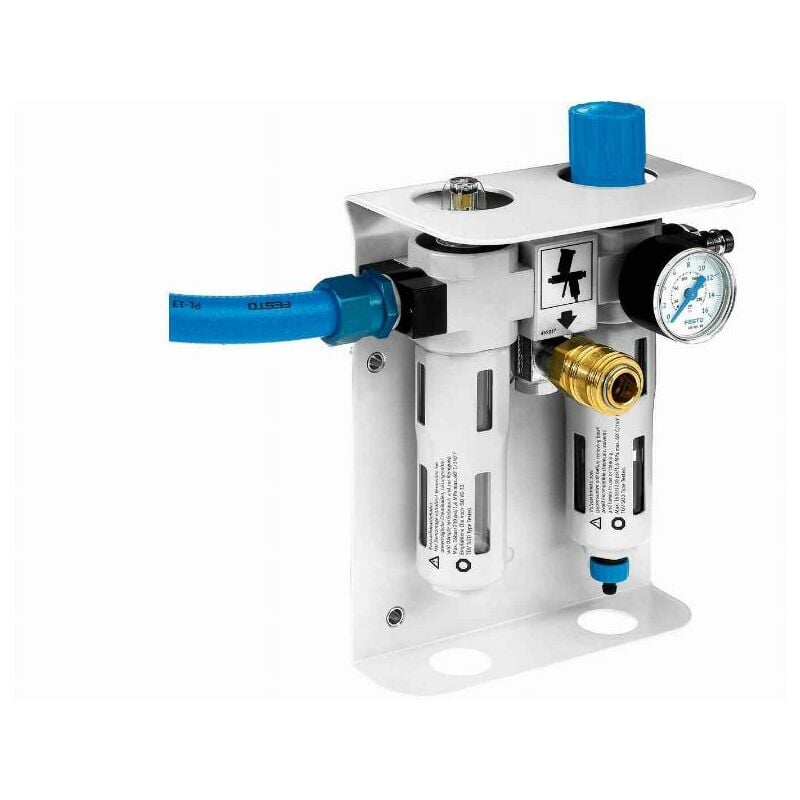 Dettagli: Per l'utilizzo di utensili di rettifica pneumatici, ad esempio LEX 3 150, sono necessarie una certa pressione e una certa quantità di olio. L'unità di alimentazione VE-CT è ideale per conciliare questi requisiti con l'utilizzo di un sistema mobile. L'unità di alimentazione assicura che l'aria venga miscelata con una piccola quantità di olio. Questo lubrifica parti come le lamelle della levigatrice pneumatica e aumenta la durata degli utensili pneumatici collegati. Unità combinata composta da un regolatore di pressione e da un lubrificatore Attacco rapido supplementare per l'uscita dell'aria compressa senza olio Facilmente adattabile a CT 26/36/48 in versione LE Protezione efficace grazie alla struttura solida Per la regolazione della pressione dei dispositivi pneumatici Olio integrato per la lubrificazione degli utensili pneumatici Dotazione: regolatore di pressione valvola di scarico rapido oliatore e uscita aria compressa oil-free con attacco rapido