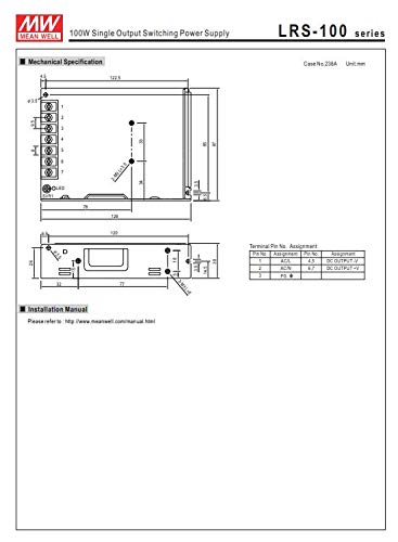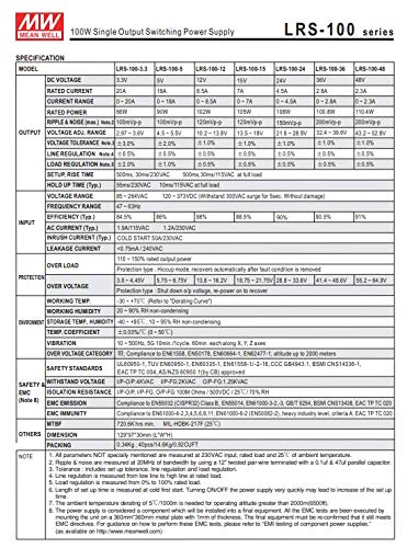 Alimentatore Meanwell 100W 24V, Modello LRS-100-24 Switching, Tensione Costante, Non Impermeabile IP20, Trasformatore da AC 220V a DC 24V, Compatibile con Strip Led, Cod. 0199