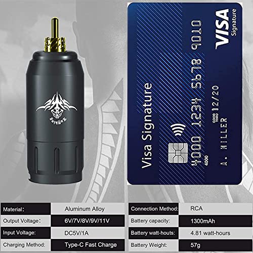 Grande capacità: compatibile con tutte le comuni macchine per tatuaggi RCA. Batteria al litio da 1300 mAh, completamente carica, dura 3-6 ore a seconda dell'uso personale e della macchina per tatuaggi.