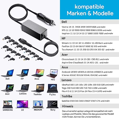 HKY Alimentatore da 100 W, 90 W, 65 W, 45 W, mini universale DC, alimentazione 12 V-24 V, con 17 spine per HP Compaq Asus Acer Toshiba Dell Lenovo IBM Samsung Sony Fujitsu Gateway NEC Medion Laptop