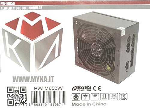 Alimentatore myka atx modulare 650w avior 650 watt 8 uscite ventola 14cm 20+4 pin 3 molex 3 sata 1 pci express 6+2 tasto on/off pw-m650