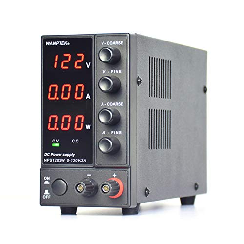 Alimentatore di rete da laboratorio regolabile DC 0-120 V 0-3 A con display digitale a LED, alimentatore stabilizzato con cavo di alimentazione e cavo di uscita