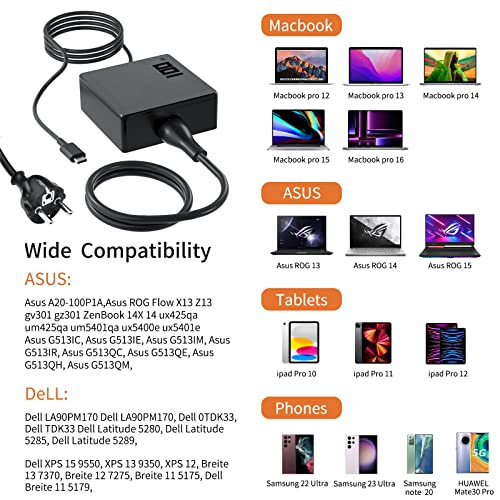 ✅ Alimentatore di rete USB tipo C da 100 W con chip Cypress PD2.0, perfettamente compatibile con MacBook/notebook/computer di marca/tablet/smartphone e altri dispositivi (compatibile con 100 W, 96 W, 90 W, 87 W, 65 W, 61 W, 60 W, 45 W, 30 W, 20 W e altri dispositivi USB di tipo C). Anni di garanzia di qualità