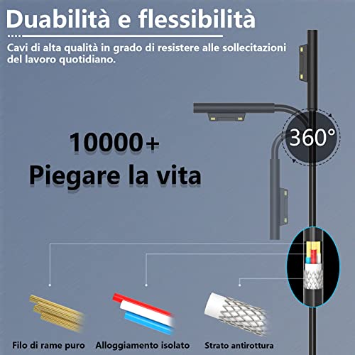 Modèles compatibles: caricatore pc per Microsoft caricatore Surface Pro X, caricatore Surface Pro 8, caricatore Surface Pro 7, caricatore Surface Pro 6, caricatore Surface Pro 5, caricatore Surface Pro 4, caricatore Surface Book, caricatore Surface Book 2 13-inch, caricatore surface Laptop (2017), caricatore Surface Laptop 2/3/4 (Model 1706), caricatore Surface Go, caricatore Surface Go 2