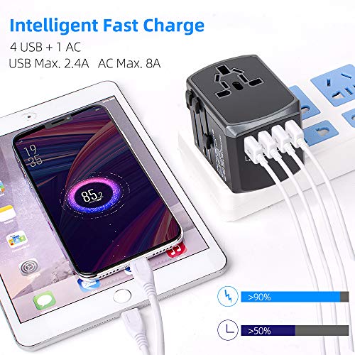 All in One Alimentatore Universale 4 USB Adattatore da Viaggio con Caricatore AC da Parete Internazionale per Tutto il Mondo Spina 8 pin Presa AC (Nero + Grigio)