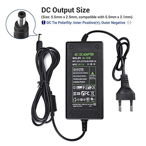 12V 3A Alimentatore Universale, 36W Trasformatore adattatore di alimentazione per Monitor a Schermo LCD, Esterni LED Domestica Dispositivi 5,5 X 2,5mm