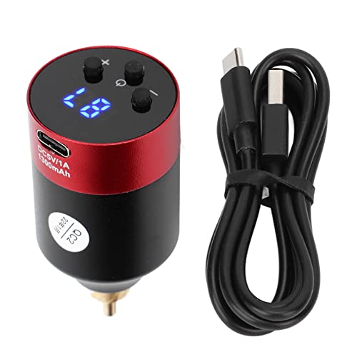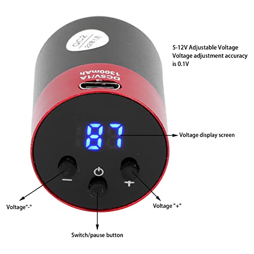 Alimentatore Wireless per Tatuaggi Interfaccia RCA Alimentatore per Penna per Macchinetta per Tatuaggi Display a LED Alimentatore per Tatuaggi a Tensione Regolabile(rosso RCA)