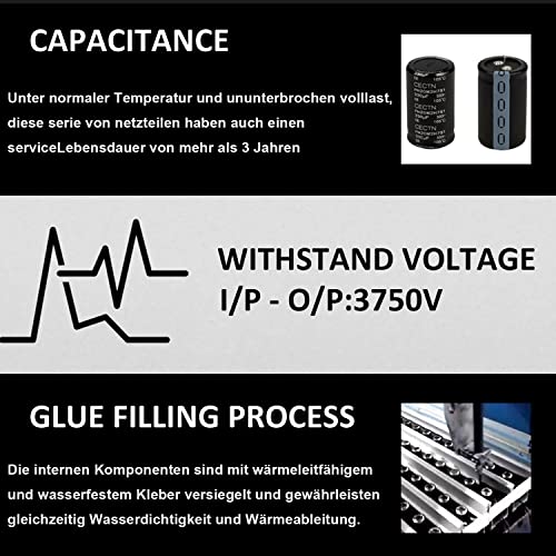 【Alta qualità】Il nostro alimentatore LED 24V passa al 100% attraverso un processo di invecchiamento ad alta temperatura e trasformatore LED 24V dispone di una funzione EMI attiva e di protezioni contro cortocircuito, sovratensione, sovraccarico e surriscaldamento.