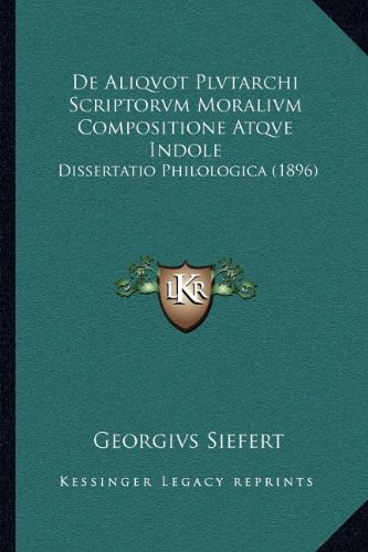 De Aliqvot Plvtarchi Scriptorvm Moralivm Compositione Atqve Indole: Dissertatio Philologica (1896)