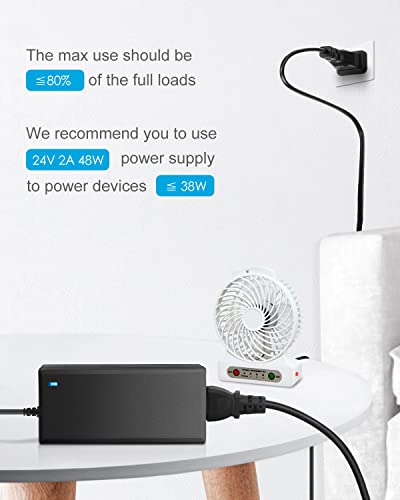 È perfetto per dispositivi da 24 V con meno di 48 W, come ad esempio B. Striscia LED 5050 2835, 24 V, telecamera CCTV, sistema di sorveglianza di sicurezza, altoparlante Bluetooth, pompa dell'acqua motore a corrente continua.
