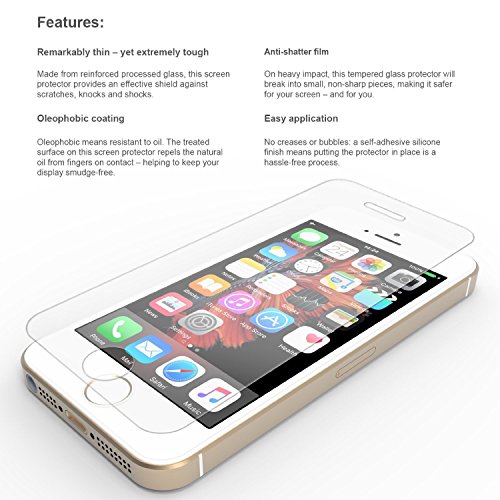 DN Alive, pellicola salvaschermo trasparente ad alta definizione, in vetro temperato, per iPhone SE/5S/5C/5, durezza 9H, ultrasottile e antigraffio